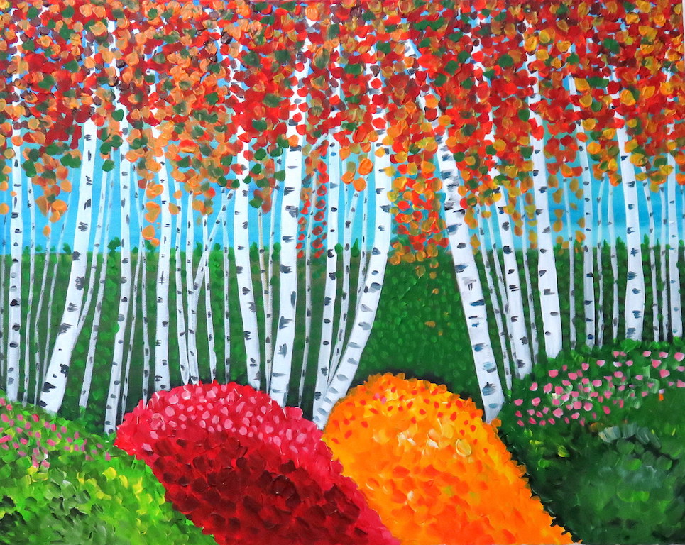 × Colourful Birch Tree Fine artist quality acryiic colours on canvas. This is a Happy painting.It would give you peace and happiness by looking at it anytime.