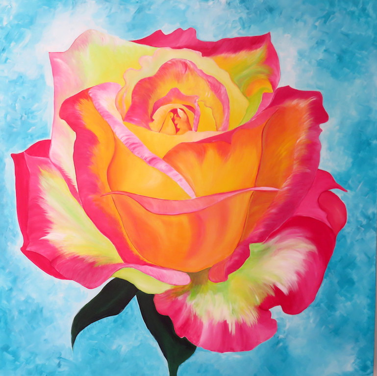 × The Rose Fine artist quality acrylic painting on canvas. This colourful pink rose painting is perfect to make your room more beautiful.