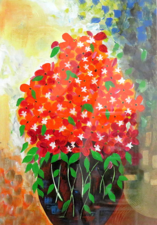 She has got the gift of painting from her mother. Her passion for colours, whether it be vibrant or subdued, is very evident in her work. Her art is a feeling, an expression and a positive interpretation of life.